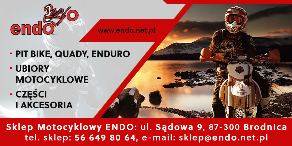 Firma ENDO powstała w 2006r. Jest ona dzieckiem mojego wieloletniego zamiłowania do jednośladów. Od połowy lat 90tych motocykle stały się nieodłączną częścią życia, czyli pasją, której poświęcałem ponadprzeciętną część wolnego czasu. Pasja ta ewoluowała przez kilka lat, a ponieważ w tamtych latach dostępność motocykli opierała się głównie na „ożywianiu” lub budowaniu motocykli w oparciu o pozostałości okresu powojennego i PRLu, więc zamiłowanie to opierało się raczej na przesiadywaniu w warsztacie i chyba dlatego dobrze pamiętam smak pierwszych przejażdżek i wyjazdów w towarzystwie podobnych odchyleńców. Wszystko co robiłem, nawiązywało w jakiś sposób do motocykli. Nawet wykształcenie wyższe zdobyłem mechaniczne ze specjalizacją konstruktorską. Kilka lat po studiach postanowiłem moje życie zawodowe związać również z motocyklami i w taki sposób z połączenia pasji i doświadczenia, powstała firma ENDO. Z upływem czasu firma stała się rodzinna, a ciężka praca i dużo poświęconego czasu zaowocowało rozwojem firmy i nie mamy zamiaru spocząć na laurach. Staramy się spełniać oczekiwania klientów i dlatego mały sklepik zamieniliśmy na obszerny salon aby motocykliści mieli zawsze pod ręką najważniejsze środki eksploatacyjne i akcesoria dla siebie oraz swoich maszyn.   Powiększając powierzchnię sklepu, będziemy stale powiększać asortyment. Zapraszamy więc wszystkich motocyklistów poszukujących ubrań zarówno do jazdy no szosie jak i do off roadu.     Wychodząc na przeciw Waszym oczekiwaniom, przy zakupie oleju z filtrem, klocków hamulcowych oraz napędu wymienimy w/w części bez dodatkowej dopłaty. Dokładamy również wszelkich starań, by motocykle opuszczające nasze progi były zawsze bezpieczne dla kupujących i nie dopuszczamy nigdy motocykli, którymi miałbym obawy sam podróżować. Każdy motocykl przed dopuszczeniem do sprzedaży jest sprawdzany pod względem prawidłowości pracy silnika, układu hamulcowego i zawieszenia. Sprawdzamy również czy „prosto się prowadzi”. Na życzenie klienta możemy przeprowadzić w zakupionym sprzęcie serwis, oczywiście po ustaleniu w jakim zakresie ma on zostać wykonany.